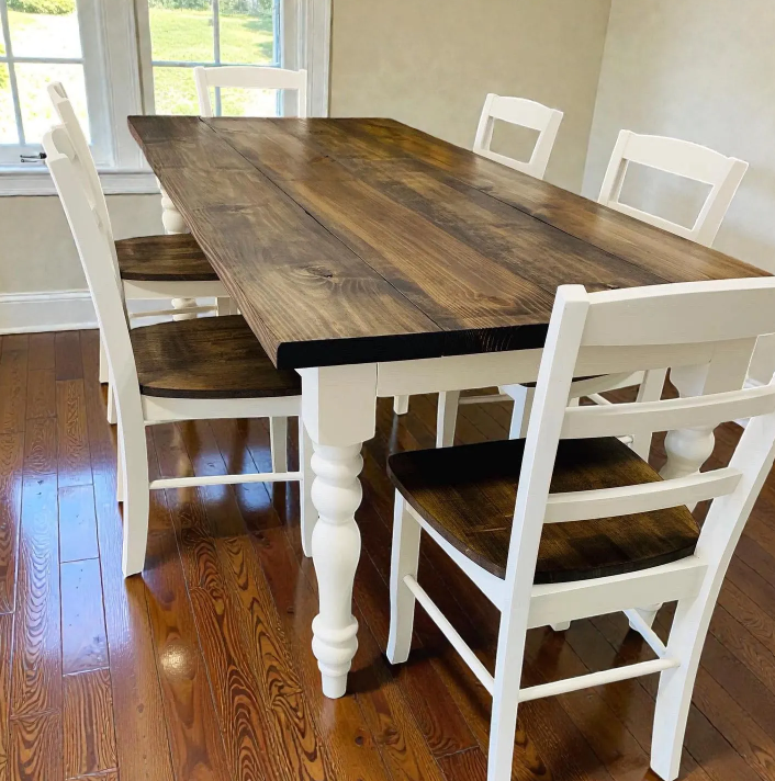 ***The hand-painted and/or stained chairs shown in the listing pictures with the table are no longer offered. We can, however, offer prefinished chairs with the table. See the picture with prefinished chair options available or contact us. We can also offer bench(es) and stool(s) as seating options. Please message us for pricing with the desired seating option.***